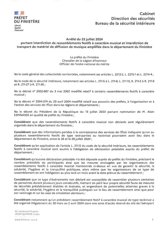Arrêté « interdiction de rassemblements festifs »