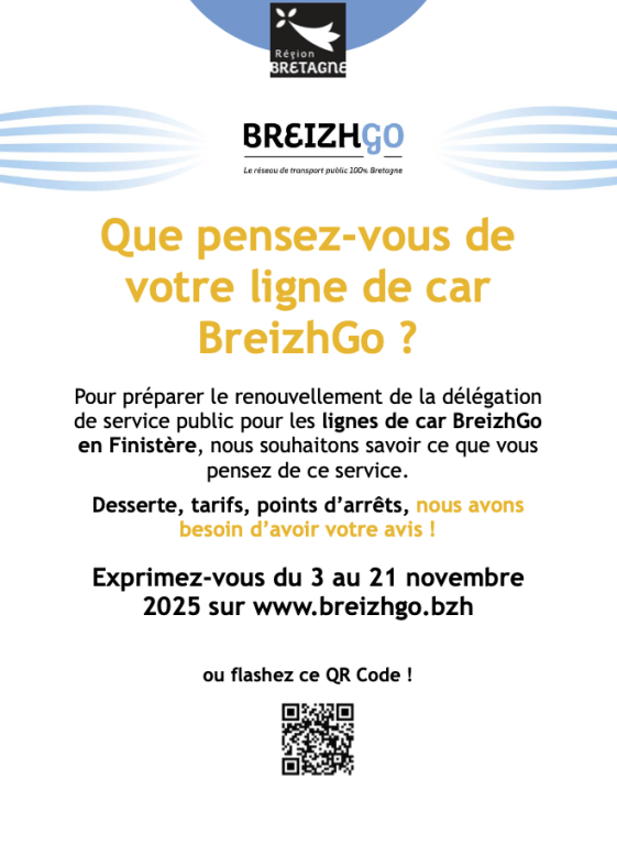Du 3 au 21 novembre 2025, vous pouvez participer à cette concertation en ligne sur le site www.breizhgo.bzh.